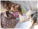 「おいしい」「健康」「安心安全」ファンサイト参加中 おはようごぢゃりまっせ(ノ≧▽≦)ノ めちゃめちゃ嬉しいことがあったからご報告ぅ ゆなが大スキな銀座DAXDACHSの夏の福袋モニターに当選したのぉ しかも、大勢の中から1名の中のゆな 正式に親バカ認定されたってことでしょ??ニャハハ 自他共に認める親バカですからぁ ダックス飼いさんぢゃなきゃ知らないお店かもしれないけど、ゆなログには子供たちのお洋服で度々登場してたりするよ 冬着てる白のダウンとかも 友だちのわんこの誕生日プレゼントに活用させてもらったり、モニターしたからぢゃなく、本当にお気に入りなお店なの ダックスサイズって普通の店だとSMLとかなんだけど、ここだともっとサイズ展開あって、セラとアクアにぴったりなサイズが選べるの まだセラ1人でアクアがうちの子になってないときからだから、7年くらいお世話になってます ってことで、今回モニターさせてもらったのがこれ かわいぃバッグに入った福袋 セラ子の頭つるんとしてるかわえぇ モニプラ限定福袋の中身は っておぃっっ ゆながテンションMaxで【セラ子あきゅ!!!!届いたよぉぉぉぉ】なんて言ってたから、子供たちもテンションMax かわいすぎるじぇ← フェイスタオルハンドタオルとDAX DACHSのステッカー ダックスモチーフってだけで、ダックスラヴなゆなのテンションはあがるわぁ テンション上がってるときでも写真となるとポーズを取るいい子たち ピローのハズでした 写真撮ろうとしたら、セラにパクっとされ(左下w)、そのまま楽しそうに遊んでたからおもちゃとして活用することに決定 同封のお手紙にも【枕といいつつ、使い方はワンちゃん次第です!】って書いてあったし、良くわかってらっしゃる おやつアソート ささみ&砂肝&馬肉ジャーキー つむじのふりかけ 保存料やら防腐剤とか使ってないおやつ最高 アクアは興味津津でゆなから離れず セラはピローでの遊びに夢中 あきゅはダイエットちぅだから、まずは馬肉ジャーキーにしてみた もちろん、ジャーキー取り出したらセラもピローを投げ捨て参加 写真左下にピローくん、います 小さくカットしていざ、試食っっ カメラ大スキな子たちが、カメラ気にせずがっついてるぅぅぅ あきゅは取られないように、反対むいてるくらいだからね 防腐剤とか入ってないからジップロックに入れて、冷蔵庫IN 毎日少しづつ、本当美味しく頂きました そしてもう1つのお楽しみ このふりかけのなにがすごいって 使ってる素材の仕入れ先まで明記されてるのっっ ㈱とか、素材表で見ることない文字いっぱいでちょっと笑ったけど、さすがですっ フードにまぜて頂きまーす あはははは 2わん共なんていい表情するんだ それだけ美味しかったんだね もちろん完食 ただ、数日後、セラ子が食べなくなっちゃって、やっぱり偏食さん 夏バテでフード食べないこともある子だから、フードがイヤだっただけかもしれないけど、ムリヤリは食べさせたくないから、ちょっと間を開けてみた あきゅは変わらず食べてまーす 子供たちが喜ぶ福袋で、ゆなもすっごい嬉しかったぁ 本来売ってる福袋は、このセットにお洋服とか小物とかも入ってたりするよ 2013夏の福袋 10,500円コース セラ子の誕生日もあと1ヵ月を切ってるし、また遊びに行くかもしれませーん たっくさんのわんこがお出迎えしてくれるからセラ子は連れていけないけど、いつもゆなが癒されてます 親バカ認定ありがとうございましたぁ←違うかもw 本気で嬉しかったでーす 今日も楽しい1日を 続きを見る ['close']