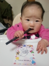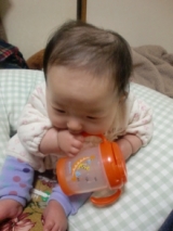 ↑先日購入したマグを持たせてみましたが、、モグモグして終了、、練習しなきゃね