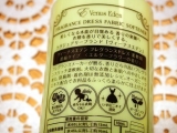 洗濯の時に柔軟剤は使いますか?我が家は小さい子がいるので、柔軟剤を使っていますふんわり仕上げ 香り長持ちong>ヴィーナスエデン フレグランス柔軟剤をお試しさせていただきました柔軟剤とは思えないお洒落なボトルですね!殺伐とした洗濯機周りに置いておいても、かわいい雑貨のようで生活感が現れないので雑貨感覚で置けますね!私が頂いたのはエルダーフラワーの香りとっても爽やかです エルダーフラワーがどんなものなのか実際の花は見たことありませんが、爽やかないい香りですこちらの柔軟剤、防腐剤着色剤フリーで赤ちゃんの衣類にも使えるんだそうですよ!アレルギーの心配のない子供だったらなんでもいいのかもしれませんが、まだまだ肌の柔い我が家の子供たち、お肌に優しい安心して使えるものがいいですよね!今の時期、花粉はちょっとおさまりつつありますが花粉の吸着を抑えるそうなので、花粉症の方にも優しいと思います使い方は従来の柔軟剤と一緒で、洗濯機の柔軟剤投入口に入れるだけです簡単このボトル、見た目もお洒落ですが細身なので女性の手にも馴染んでしっくりと持ちやすいんです!そして濃縮タイプなので、(45L使用時で)1本で約50回も使えます!見かけによらず骨太な商品ですね!さて洗い上がりですが、柔軟剤効果で干す時から洗濯物が柔らかくとってもいい匂いがします干してる時からいい匂いがしてますが、乾いてからもほんのりと香りが続いています最近は香り系が流行っているのか、洗濯関係でも色んな香りの洗剤や柔軟剤が出ていますね中には恐ろしく香りがきつい商品もあり、使うのをためらうものもありますが、こちらはほんのりと香るだけなので安心して使えます子供にも安心して使え、いい匂いのする柔軟剤で洗った服を着て寝てる子供たちすやすやと眠ってる顔をみたら、洗剤や柔軟剤もキチンと選んであげたいな、と思いますとても使いやすく、雑貨的要素もあるお洒落な柔軟剤 ヴィーナスエデン フレグランスドレス子供だけじゃなく、大人にも優しい柔軟剤だと思いますフィッツコーポレーションファンサイト参加中 続きを見る ['close']