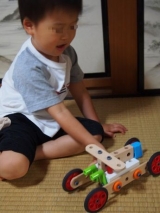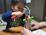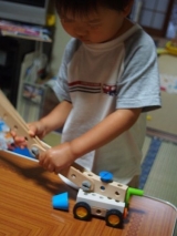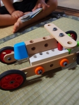 ■BRIO ブリオの人気ビルダーシリーズより、olor="#0000ff">3歳からの工事セット ブリオ ビルダー コンストラクションセットをモニターさせて頂きましたブリオというとスエーデンの玩具メーカー多くのおもちゃが温かみのある木で作られています我が家にもブリオ製品で言うとレールセットがあり、息子が小さい頃からお世話になっています今回モニターさせて頂いたのは、ブリオ ビルダー コンストラクションセット で、自分で木やプラスティックで作られた部品を使って自分の好きなものを組み立てて遊ぶというもの3歳からの工事セットという事で、もうすぐ3歳半の息子にちょうどいいかな?と思って渡してみました箱を開けるとそこには様々な部品がいっぱい!なんと全部で135のピースとパーツが入っています!(写真ではバラバラに写っていますが、実際はちゃんとパーツごとにビニール袋で個別包装された状態で入っています)息子にこのセットを見せた所、ものすごい勢いで食いついてきました!「開けて開けて!!」どうやるかイマイチ本人は分かっていませんが、ドライバーでさっそくネジを回そうとしていました普段、プラレールの電池が切れたりしたらドライバーでネジを回して電池を換えるという事を知っているのでこのおもちゃが部品をいじるものだという事は認識したようです■135のピースとパーツわかりやすいようにぜんぶ種類別に並べてみましたこれだけの部品が入っています木のパーツにネジやクギなど、大工仕事で使うものが一式入っている感じですね金づちやボルト締めなどもありますパーツとパーツを繋げるのには小さな部品を使うのですが、手でも引っ張ったらとれますがこのペンチを使うと簡単に引き抜けますパーツに刺さったジョイント部品をペンチでつまんで抜いた所強い力は要りません簡単に抜けます3歳の息子でもこのペンチは簡単に片手で開閉できました当たり前ですが、力の弱い子供にも使いやすいようにすべての部品が設計されている模様です正直息子は3歳ですが、自分で好きに組み立てるにはまだまだ難しかったようで、周りの大人に作ってと要求していました息子が作るとまだまだ形にはならないこんなものを作っていました穴にぜんぶネジをカナヅチで押し込んでました同封されていたあそび方ガイドには、お手本が載っていますロボット、レーシングカー、クレーン車と3種類ありましたので組み立ててみました息子にはまだこのガイドを見て組み立てるという所までは力及ばずだったので、大人が手伝いながら組みてみましたクレーン車ちょっとコツがいりましたがすぐにできましたちゃんとクレーンの首が動くので、本当のクレーン車の特徴を模して組みあがったので感心しました!お次はロボットユーモラスなロボットが出来上がりました大人に手伝ってもらいながらめちゃくちゃ真剣に作っています日頃ここまで真剣になることがないので、ちょっと笑えました!そしてレーシングカーこれもレーシングカーの特徴をしっかり捉えた仕上がりだな、と思います同じパーツでも組み方次第で色んなものに出来るのですね!この辺は子供の発想力を養うのにいいな、と思いますまた、細かい部品を使って組み上げるのも手先の訓練にもなると思います我が家の息子はまだ自分で発想して何かを組み立てることは難しかったようですが、おいおい成長に併せて自分の好きなものを作れるようになると思いますそれまでは、小さい部品やパーツだけで彼なりの思いついたものを作る遊びをしていくと思います↑こんなやつとか今は大人に組み立ててもらってそれを動かす方が楽しいみたいそれはそれで木の温かみのある玩具なので、いいのではないか?と親としては思います手先と頭の発達に良い知育玩具だな、と今回のモニターを通して感じましたブリオさん今回のセット意外にももたくさん玩具や子供用品を扱っておられます一度ご覧になってみてはいかがでしょうか?http//wwwbrionet/jaJP/【New新発売】ヒルズ室内物干しフィネス3段モービルタワーのモニター募集 続きを見る ['close']