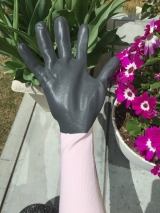 さて、今日はもう一つとってもオススメのこちらをご紹介したいと思います ガーデニング手袋です「マイリトルガーデン」リニューアルしたんですよ全3柄2タイプ(S/Mサイズ)がありますが今回「さくらロング」をご紹介します こちらが手袋の裏表になります背抜きになっているのでオシャレなだけでなく、通気性に優れています本体はナイロン、手のひら平部はニトリルゴムとなっています こちら指先カバーは深めのディップで土いじり時の土の侵入をバッチリ防いでくれます発砲ニトリルゴムなので柔らかくしっかりグリップ至れり尽くせりでございます サイズも大きすぎず小さすぎずちょうど良い大きさになっています そしてこちらはロングサイズになりひじ下まで腕をしっかりガードしてくれるので日焼け対策もバッチリフィット感が気持ち良く、使いやすいです 裏はこんな風になっているのでじゃんじゃん土を触っても汚れることなくすぐに新品みたいにキレイになっちゃいますしかも、お値段も安くて近所のケイヨーデイツーにたくさん販売されていましたこれは間違いなく、ご近所さんみんな使ってるだろうななんて想像しながらガーデニングを楽しんでいます安くて柄も可愛くて機能性も良くて買わない理由がない笑いや、本当にこの他にもイエローのたんぽぽ、ブルーのつたつむりなど柄も長さ(丈)も選べますので気になった方がいましたら是非チェックしてみて下さいねおまけ アゲハチョウが近くまで来て長い間、じっとしていてくれたので息子と一緒にじっくり観察できましたアゲハさん、ありがとうそれじゃ、またねダンロップホームプロダクツファンサイト参加中 続きを見る