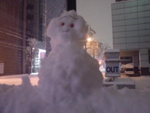12月3,4日と札幌に行きました 3日はこの冬初めての大雪で飛行機の決行が相次ぎました 保母さんの友達が雪だるまを作ると言い出し、ホテルの前で作りました 四十路を越えたふたりではしゃいで作りましたよ