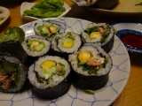 おはようございます 2月1日 月曜日 今日から2月が始まります 卒園卒業に向けて、色々と忙しい月になりそうです でも、今月から、5年くらい続けていた、内職とメール便が両方とも、無くなりました パートのお仕事1本になります まさかの、同じ時に終わってしまって、これは、何かあるのかな 新しい年に向かって、新しいことが始まる予感です 昨日は、一日中特に何もすることもなく お掃除しようかななんて思っていたけど、それもさぼっちゃって パイシートがあったので、ガレットデロワを作りました 2月3日は節分 水曜日なので、お仕事があり、手作りの恵方巻きを作る時間はなさそうだったので、昨日作っちゃいました 全部で5本 七福恵方巻き、サラダ巻きを作りました 7種類の具をたっぷり入れた、七福恵方巻きは、ずっしり重みがあって、それだけでおかずとご飯を食べれる感じ サラダ巻きは、ツナときゅうりと卵を入れました 卵は甘めが美味しいです 美味しくできた♪ お気に入りの本搾りと一緒に、あつあつから揚げ 定番の味付けで、ジューシーなから揚げができました すっごく美味しかった お餅の白菜巻き 白菜でお餅を巻いて、醤油味のスープで煮ました お餅がとろり 菜の花の胡麻酢和え 菜の花、人参、こんにゃく、しいたけを、すりゴマ、醤油、お酢、砂糖で和えました 水菜のチョレギサラダ 塩コショウとごま油で味付け たくあんときゅうりも入れました 恵方巻きもから揚げも、すっごく美味しくて大満足 ごちそうさまでした ランキングに参加しています ポチっとお願いします にほんブログ村 「チーズケーキのようなチョコレート」10名様にプレゼント 続きを見る ['close']