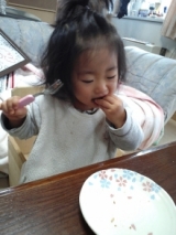 gif" alt="キュアサニー" border="0" />慶子 3歳3か月幸子 1歳3か月この一週間は、手作りおやつが充実していました月曜日 ホットケーキミックスでロールケーキ「ロールケーキ作りたい」という慶子のムチャぶり対応だったので、家にある材料で(ロールケーキなんか、作ったことないよ・・・)生クリームの代わりに、きなこ&練乳入りカスタードを作ってサンド火曜日 かぼちゃプリン皮も丸ごとすりつぶして栄養UP三温糖を使ったらカラメルが上手くできなかったいちご、バナナ、みかんをトッピングして、プリンアラモード風に(生クリームは無し)水曜日 雪だるまパン(粒あん&かぼちゃあん入り) 白神こだま酵母のソフトフランスパン寝る前の「おなか減った」にも登場木曜日 キャロットケーキと春菊のクッキー子育てサークルパンダちゃんで作りました(^^)春菊をクッキーに入れちゃうなんてでも、おいしキャロットケーキも甘くてとってもいい香り♪金曜日 豆しとぎ黒豆とうるち粉とお砂糖で作る郷土お菓子こちらもパンダちゃんで作りました土曜日 おからと豆腐のガトーショコラショコラと言っても、チョコレートは入っていませんおから(150g)、豆腐(150g)、小麦粉(50g)、ミロ砂糖牛乳レーズン(各30g)というヘルシーな材料慶子に「チョコレートケーキだよ」って教えたら、1日3回もリクエストして食べましたこの一週間で一番好評日曜日 ほうれん草とバナナのシフォンケーキ寒締めほうれんそう(3株)、バナナ(1本)、卵(2個)、牛乳(30cc)、砂糖(小2)、薄力粉(70g)砂糖の量、まさかの小さじ2!バナナの甘み恐るべし!「ほうれん草のケーキ」というと抵抗されるかと思い、キャロットケーキに倣って「スピナッチケーキだよ」と言って与えましたできるだけ砂糖は控え目に、食事ではなかなか摂りにくいお野菜を食べさせるためのおやつを心掛けて作っています(^^)♪豆しとぎは、北東北と九州地方のごく一部で今も食べられている伝統食だとかちょっとおもしろい記事があったのでリンク貼っておきます(★)焼くと香ばしくておいしいです最初の慶子の感想は、「味がしない」とのことでしたが食べているうちに、「おいしい味がする」とコメントしていましたそうそう!よく噛むと味がするんだよね豆をよく噛んで食べるので、顎の発達にも良さそうおまけパンにフォークを刺したいけれど・・・(動画 011)「えいっ!」って気合い入れても、おもちゃのフォークじゃ難しかったね(笑)今日も遊びに来てくれてありがとうにほんブログ村にほんブログ村にほんブログ村どれか1つポチっとしてみてね話題の進化系ミキサー!クッキンブレンダーをプレゼント!!健康スープレシピ大募集【3様名限定】日本初上陸!幻の白いハチミツ(100%オーガニック)をプレゼント! 続きを見る