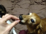 今回モニターに選ばれたのはiv> プレミアムスイソ株式会社さんから発売されているプレミアムスイソファンサイト参加中ニュージーランド発、世界特許取得の『口腔善玉菌』サプリメントペットのお口ケアに大注目の!”お口”専門の善玉菌サプリこちらの商品です我が家には現在2ワンコ&2にゃんこがおりまして今回は2ワンコのために応募させていただきました!我が家の2ワンコはMダックス→現在10歳8ヶ月の立派なシニア犬で今年は乳がんの手術も受けました頑張ったねパピヨン→現在8歳10ヶ月のこちらも立派なシニア犬今のところ大病もなく元気いっぱいで毎日の散歩が楽しくてしょうがない天真爛漫な子ですただ2人ともこんな可愛い顔してるのにお口が臭いんです…なるべく毎日歯ブラシしてあげたりデンタルケアしているつもりだったんですが歯石がたまり(Mダックスは手術時に取ってもらいましたが)お口がドブみたいな臭いがするの(´;ω;`)そこで何か手軽にできるデンタルケアはないものかと思っているときにモニプラサンで発見して即応募ですよっ!!!そしたらなんと当選しちゃいましてもう嬉しくて嬉しくて(´д`)現品が届いた日から早速2ワンコにあげていて今日であげ始めて6日目です♪ちなみに現品はこんな感じ↓で丁寧な説明がかかれたパンフと同封で送ってくださいました♪1錠あたりはそんな大きくなく小型のチワワちゃんでもなんなく食べれそうですよっていうかこのサプリすっごい良いにおい(´艸`)´ヨーグルトみたいなスキムミルクみたいな人間が飲んでも良さそうな甘い感じのにおいがするのこんな良いにおいなら水で溶いたりしなくてもワンコ達も食べるんじゃない?とあげる前からなんか確信してしまったwで、頂いた説明書きにまずは、短期で感触を見ていただくために1週間ほどは通常の粒数の数倍をあげてくださいと、書かれていたのでうちの子は小型犬で通常は1日1粒なので倍量の1日2粒あげてみました臭いをスンスンっとかいですぐにイイ匂いがしたようで2人ともペロっと錠剤のまま食べてくれました思ったとおりだったぜw1日目→変化無し 相変わらずお口がドブ臭い…Mダックスパピヨン共に2錠ずつ2日目→変化無し 相変わらずryMダックスパピヨン共に2錠ずつ3日目→少し2人とも口の匂いが軽減されてる!?そしてMダックスお腹がゆるくなってしまった…明日からサプリの量を調整する必要がありそうMダックスパピヨン共に2錠ずつ4日目→確実に2人とも口臭が薄くなってる!!Mダックス相変わらずお腹がゆるいのでピルカッターで割って15錠あげることにMダックス15錠 パピヨン2錠5日目→まだドブ臭さはあるもののかなり口臭が軽減されています♪Mダックスのお腹が調子がちょっと良くなってきましたMダックス15錠 パピヨン2錠6日目(今日)→Mダックスは手術時に歯石を取ってもらっているからかかなり口臭が薄くなりました!!パピヨンもかなり軽減されてますがMダックスに比べるとまだドブ臭いかな?6日あげてただいま↑こんな感じです通常の倍量をあげていたとはいえまさか3日ほどで効果が現れて6日目でこんなに口臭が少なくなるとは思っていなかったので驚きですΣ(゚Д゚ υ) 1粒50円となかなか高価なサプリですが、この効果を見るとそのお値段にも納得!?わんちゃん&猫ちゃんによっては歯ブラシが大嫌いな子もいますから、毎日あげるだけというお手軽さでオーラルケアができるといのもかなり魅力的ですね今回頂いたのが終わるまで毎日あげてその結果をまたご報告します♪ちなみに私は現時点ですでに商品をリピしようかと検討中です(´艸`)今回モニターに選んでくださったプレミアムスイソ株式会社さんに私もワンコ’sも感謝です プレミアムスイソファンサイト参加中 続きを見る ['close']