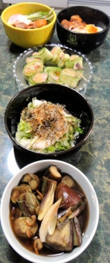 span style="fontsize 18px;">10月2日(水曜日)の献立こんにちは、すいかです★10月2日の献立今日も、やっぱりチョイとサボり気味かな???でも、自分が食べたかったものを、今日は作ってみた感じ(^_^)茄子と鶏肉の甜麺醤炒め花椒風味作者:すいかサマ■材料(2人分)鶏肉 / 100g茄子 / 180gハヤトウリ / 80g塩 / 適宜★甜麺醤 / 大さじ2★酒 / 大さじ1★醤油 / 小さじ1/2★にんにくすりおろし / 小さじ1花椒 / 適宜ごま油 / 小さじ1サラダ油 / 大さじ1■レシピを考えた人のコメントこっくり濃いめの中華のおかずビールやご飯に詳細を楽天レシピで見る…↓↓ ポイントが貯まるレシピ サイト ↓↓>>最短約 30 秒!▼無料▼会員登録<<…あのね、茄子が茄子がどうしても食べたかったのよwwwなぜだか、わからないけれど、最近、ずっと茄子が食べたかったの別に安くもなかったんだけど、3本1袋、買ったウチの1本をとりあえず、料理してみた(^_^)冷凍保存してあった、鶏肉、冷蔵庫にまだ残っていた、ハヤトウリを組み合わせて、ちょい濃い味系の中華風の炒めものにしてみたよ秋になるとこっくり系のお料理が食べたくなるよね♪♪♪でも、大阪、やっぱり日中は暑いんですケドwwww本当に10月???って感じがするけれど、よーく考えてみたら、小学生の時の運動会の思い出はやっぱり暑かったさ★温暖化温暖化、今年は異常気象だ、異常に暑いと、人は言うけれど、やっぱり、何十年前も運動会の日は暑かったと、私は思うんだよね何年くらい前だっただろ?10年くらい前かな?お正月、初詣に行くのに、今日は半袖にしたら良かったって思うような時もあったモンマジで(^_^)簡単★旨みをタップリ吸ったパッタイ作者:すいかサマ■材料(2人分)センレック / 100g豚ミンチ / 100g白菜 / 1枚干し椎茸 / 3枚干しエビ / 大さじ1オイスターソース / 大さじ1.5コチュジャン / 大さじ1醤油 / 小さじ1/2塩 / 適宜サラダ油 / 適宜にんにく生姜のみじん切り / 各大さじ1■レシピを考えた人のコメント干しエビと干し椎茸の旨みをタップリ吸ったパッタイです詳細を楽天レシピで見る…↓↓ ポイントが貯まるレシピ サイト ↓↓>>最短約 30 秒!▼無料▼会員登録<<…食べたかったのよwwww麻婆春雨お天気ママさんのブログで、先日見てから、ずっと麻婆春雨が食べたくて(^_^)いや、お料理のブログをお腹が空いている時に、見るもんじゃないよねずっと、その写真が目に焼き付いたままだもん春雨を買おうかな?と思ったんだけど、春雨なんて安いしねでも、残っているセンレックがあるのに、また中途半端に春雨を買ったらまたどっちも、中途半端に残っちゃうのがネwwwここで買わないを選択した私は、エライ!!!!って思ったんだけど未開封のセンレックを開けて、これを作ったあとに気がついた、中途半端に、開封したセンレックがまだ、乾物を入れている、カンカンに残ってた(T_T)全くもって、やっぱり、エライ事は全然なかったです(^_^)注釈※大阪人は缶をカンカンと言う(缶々)大阪では、アメはあめちゃんだが、缶は缶ちゃんではなく、カンカンと呼ばれている(^_^)1品目と同じように、こっちも中華っぽい、濃いめの味付けコチュジャンでピリ辛もプラス豚ひき肉、白菜を炒めて、干し椎茸、干しエビ、それに両方の戻し汁を入れて沸騰させる一旦、火を止めて、ここに乾燥したままのセンレックをダイレクトに入れて、鍋の中で、センレックを戻す感じある程度、ふんにゃりしたら、再び火を付けて、センレックに煮汁をしみ込ませる感じで仕上げるよ水分がほぼ無くなった時に、センレックがちょうどいい戻り具合になっているそこを目指すわけです★こういう方法って、普通、センレックの製品表示の方法には書いてないんだけどサ(^_^)パエリアを作るのと同じ、感覚に思えば、それほど、ヘンな事はないと思うんだけどナ洗い物も少ないし、干し椎茸と干しエビのだし、それに調味料を吸ったセンレック、かなり美味しいよくれぐれも、グニャグニャになったりしないように、仕上げてね♪♪♪もやしとかいわれ大根のさっぱり和え作者:すいかサマ■材料(2人分)もやし / 1/2袋かいわれ大根 / 1パック★ポン酢 / 大さじ1.5★ごま油orサラダ油 / 小さじ1/2塩 / 少々■レシピを考えた人のコメント濃いめおかずが主菜の時の、副菜に詳細を楽天レシピで見る…↓↓ ポイントが貯まるレシピ サイト ↓↓>>最短約 30 秒!▼無料▼会員登録<<…ふたつ、こっくり系で来たので、さっぱりした野菜の副菜をもやしはタップリのお湯で茹でたりしない水とガス代の無駄(^_^)水気が付いたまま鍋に入れて、水で炒める感じをイメージするとイイよもやしがしんなりしたら、火を止めてカイワレを加えてひと混ぜそしたら、ザルにあげて流水で洗う私は、ここはタップリのお水を使って、もやし臭さをしっかり取るのネ水気を絞って、ポン酢+ごま油の簡単調味蒸し鶏の梅とろろ和え作者:すいかサマ■材料(1,2人分)長芋(すりおろし) / 120gめんつゆor醤油 / 小さじ1/2梅干し(塩分18%) / 1コ★鶏肉 / 50g★酒 / 小さじ1★塩 / 少々