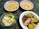 span style="color rgb(132, 0, 132);">10月4日(金曜日)の献立こんにちは、すいかです10月4日(金曜日)の献立です今日は、プレジデントに貰った、私の大好きな稲庭うどんを、どまんなかにして献立を考えました(^_^)1品目辛口牛すじ温玉稲庭うどん作者:すいかサマ■材料(2人分)稲庭うどん / 160g辛口牛すじ煮込み(市販品) / 300g卵 / 2コきゅうりやネギ等 / お好みで■レシピを考えた人のコメントこれからの季節にピッタリ市販品の煮込みを使ったボリューム満点のおうどんです詳細を楽天レシピで見る…↓↓ ポイントが貯まるレシピ サイト ↓↓>>最短約 30 秒!▼無料▼会員登録<<…市販品の辛口の牛すじ煮込みを茹でた稲庭うどんにどーんとかけました(^_^)本当は、ドバっとおネギをかけたいところだけどね、好き嫌いがある人との同居はお料理に制限がかかる(T_T)で、後から出てくるお料理に、きゅうりのスライスを使ったので、スライスしきれない、きゅうりの緑の濃い部分を、旦那さんのおうどんには、チョイと細工して乗せてみたよ私の分は庭のプランターに植えた、ネギをつまんで乗せてみた(^_^)温泉卵はカップスープのカップで作ったんだけど、カップに2コ卵を入れて、熱湯を注いで18分程置いて、1個めを割ってみたら、まだ全然仕方がないので、ちょっとレンチンもう1個はそのまま10分ほど更に放置こっちは上手に出来た(^_^)そのままぶっ続けで、蓋を撮らずに卵2コを置くとしたら、25分くらいカナ?またチャレンジしてみよっと旦那さんの方の成功、温泉卵を箸でちょんと、突いてみる❤その黄身の部分に、プリプリのすじ肉をとろりと絡ませてみる♪♪♪あはは、卵好きの私にはたまりませんいや、私より、すじ肉大好き、そして卵も大好きな旦那さんはHAPPY満開★彡簡単★レンチン鮭のきゅうり巻き★ジュレ乗っけ作者:すいかサマ■材料(2.3人分)★秋鮭 / 180g★酒 / 大さじ1★塩 / 小さじ1/4きゅうり / 1本塩 / 少々ポン酢ジュレなどお好みのジュレ / 適宜■レシピを考えた人のコメント鮭はレンジで2,3分チン!!するだけで色々なお料理に活用できます詳細を楽天レシピで見る…↓↓ ポイントが貯まるレシピ サイト ↓↓>>最短約 30 秒!▼無料▼会員登録<<…副菜は、魚のおかずレンチンした鮭に、きゅうりを巻き込んで、ポン酢ジュレを乗っけただけ(^_^)鮭はレンジで2分くらい、レンチンするだけで、結構、色々なおかずに変身する、私のお役立ちアイテムジュレを乗せたけど、前日から、きゅうり巻きしたレンチン鮭を、ポン酢かなんかに漬け込んで少し濃い目に味付けしておけば、お弁当のおかずにもイイよ彩りも綺麗だしね秋のおばんざい★茄子と干しエビの煮物作者:すいかサマ■材料(2,3人分)茄子 / 300gみょうが / 3本干しエビ / 大さじ1ぬるま湯 / 1カップ薄口醤油 / 小さじ1弱みりん / 小さじ1塩 / 少々サラダ油 / 大さじ1■レシピを考えた人のコメントほっこり秋の和食詳細を楽天レシピで見る…↓↓ ポイントが貯まるレシピ サイト ↓↓>>最短約 30 秒!▼無料▼会員登録<<…食べたいのヨ茄子が(^_^)3本買った、ウチの残りの2本を、定番のお惣菜に仕上げてみたよ自分のためだけに作った、茄子の煮物どうせ、旦那さん、食べたとしても一口で、しかもイヤイヤなんだもん(T_T)それだったら、幸せナスの独り占めwwww❤全部、一人で食べてやりました(^_^)あぁ幸せだわ❤白菜と長芋のシャキシャキ和え作者:すいかサマ■材料(2,3人分)白菜 / 2枚長芋 / 80g塩 / 適宜ポン酢やだし醤油やめんつゆなど / 適宜※根昆布の細切り / 5g■レシピを考えた人のコメントシャキシャキの食感が美味しい、和風のサラダ詳細を楽天レシピで見る…↓↓ ポイントが貯まるレシピ サイト ↓↓>>最短約 30 秒!▼無料▼会員登録<<…切った白菜と、長芋それに、前にモニター商品として頂いた、こんな感じの、昆布をトッピングしただけです根昆布など数種類の昆布、ゴマなどが入ったふりかけ風の商品献立の中にはこういう、どってコト無いお料理が本当に必要なんだよそういう、お料理にかつお節とか、塩昆布とか、こういう商品って便利だよね普通の塩昆布は化学調味料もタップリ入っているけれど、これは、天然の数種類の昆布と、かつお節、で、ゴマとかで出来ているとっても、ステキな感じしかも根昆布のヌルヌルが、混ぜ合わせると、全体を絡めるようにまとめる感じになるの♪♪♪長芋の千切りなんだけど、すりおろしの山芋を食べているような気分になれる(^_^)簡単だけど、本当に美味しいんだこのお料理地味だけどね★★10月4日(金曜日)の献立は、こんな感じで全4品ごちそうさまでした❤にほんブログ村レシピブログのランキングに参加中♪ よろしければクリックしてくださいね♪応援して頂けたら嬉しいです♪<富山県>「氷見手延うどん 瑞龍(乾麺)三色詰合せ」モニター10名様募集! 続きを見る ['close']