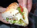 一番大好きなファストフードはサブウェイです!東京で一人暮らししていたとき、野菜が食べたいなっ!って思ったときは、必ずサブウェイに行っていました!/>ここ数年で地元にも出来て以来、実家からアパートへ戻るとき買って帰ったりしてたことも最近は期間限定の新製品がコンスタントに発売されるのでついついちょくちょく購入しちゃいます!そんなサブウェイでは、現在「がぶりとフレンチ!」ということで、フレンチサンドが期間限定で発売中!今回はその中で「鴨のパストラミ爽やかオレンジソース」を買ってきましたー♪もう一つは大好きな「チーズローストチキン」です♪この「鴨のパストラミ爽やかオレンジソース」はフランスでは定番の鴨とオレンジソースの組み合わせをサンドイッチにしたもの!鴨のサンドって食べたことがないので楽しみにしていました!ちなみにtohkoは、サブウェイでは「ハニーオーツ」が定番!半分に切ってみました!鴨のパストラミは黒胡椒が効いていてハムともベーコンともチキンとも違う旨みがします!そして、その旨みが爽やかなオレンジソースとの相性ぴったり!今までのサブウェイにはない新感覚のサンドイッチですよー!ちなみにもう一つの期間限定商品「オイルサーディンのチーズ&バジル仕立て」も2週間ほど前にいただだきましたが美味しかった!真いわしのオイル漬け「オイルサーディン」は魚の臭みとか一切なくて、ゴルゴンゾ-ラ入りのクリームチーズとも相性抜群!私も大好きな人気商品「チーズローストチキン」が好きな人は絶対気に入ると思います!そして「フレンチサンド」と一緒に「オレンジーナ」が発売されていますが、昔から大好きな「オレンジーナ」日本上陸とっても嬉しいです♪自分では簡単に作れないサンドイッチ!ぜひぜひお試しくださいませー!【野菜のサブウェイ】4月11日(水)発売!期間限定サンドイッチの感想募集!! ←参加中tohkoのお気に入りは「チーズローストチキン」トマト多めのオイル&ビネガー追加タイプですもちろん胡椒をたっぷりでっ! 続きを見る ['close']