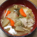 冬の日帰り温泉で意気投合したご夫婦に招待を受け、自家製野菜で作っていただいた熱々の「けんちん汁」カラダだけでなく心まで温まりました