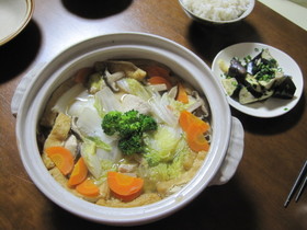 趣味で栽培している野菜をタップリ入れてのあつあつお鍋です