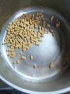 無添加のドックフードを家の犬たちに試してみました粒は小粒で小型犬でも食べやすい大きさ家には大きいのと、小さいのそれぞれいるので半分ずつ出しましたが