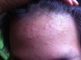 明色化粧品(桃谷順天館グループ)ファンサイト参加中 こんなにひどかったニキビだらけのおでこ オートメディカ一本で毎日ケアしていきました赤みが引