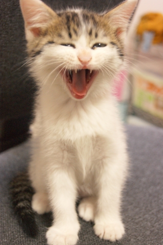 ①花ちゃん ②4ヶ月 ③女の子 ④YUYU ⑤すやすや寝ていた花ちゃんがむっくり起きて、ひとあくびなんだか笑っているみたい♪