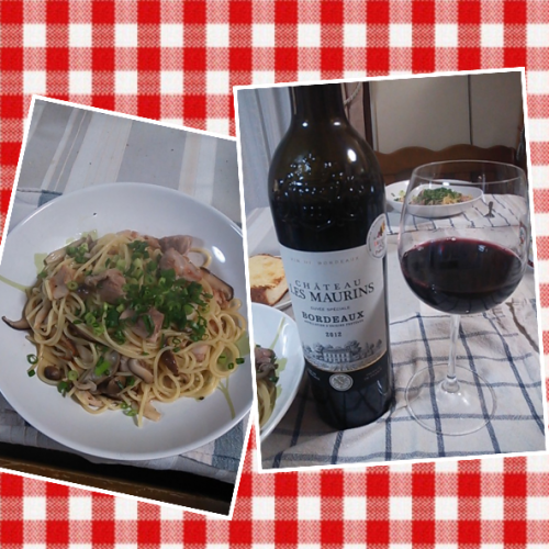 鶏肉ときのこの柚子胡椒パスタにも赤ワイン合うよ おいしかったです!