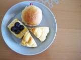 そろそろ最近のお楽しみだった 『おうちパン工房』も終盤 お楽しみにしていた ベイクドチーズケーキパイ いよいよ焼いてみることに♪ ブルーベリーをちょこんと乗せてみたよ 娘がパクリと食べやすいように 一つのチーズパイを3等分に 小麦の匠で作ったチーズとハムサンド メロンパン そしてベイクドチーズパイ ランチに美味しく頂きました♪ 「このパン、ケーキみたいで美味しい♪」 だそう^^ これは発酵時間もいらないし とっても美味しいし、簡単! あっという間になくなっちゃった^m^ Pascoファンサイト参加中 続きを見る ['close']