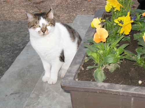 山形県北部在住です桜は5月上旬にならないと咲かなのでどうやって春らしさを出そうか悩みましたパンジーと一緒のところをパチリおすまし顔をしちゃってます ルウ MIX めす 3歳です