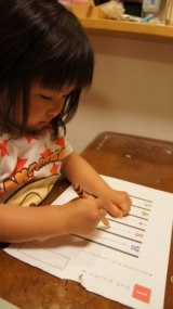 モニプラさん&くもん出版さんより、くもんの「こどもえんぴつ」と「幼児ドリル」が 届きましたebajp/blog/ucs/img/char/char2/038gif" width="16" height="16" /> 最近、手先が器用になり、工作にはまっているピーチ姫 えんぴつはまだむずかしいかなでもやらせてみようかななんて 思っていたので、さっそく挑戦してみました ピーチ姫に、「はじめてのひらがな」のワークと、こどもえんぴつ6B、 こどもえんぴつけずりを渡すと、一生懸命に見ていて、やりたい!!とヾ(@°▽°@)ノ 早くやりたい気持ちが勝って、笑顔なんだけど焦ってます まずは、えんぴつを削るところから 太めの鉛筆なので、2歳のピーチ姫にも持ちやすく、えんぴつけずりも 自分で持って削れるくらいの大きさで、自分で削ってくれました このワークのいいところは、1枚1枚切り離して使えるところです 小さい子って、ページとページの段差とか、ちょっとした厚みでも 文字を書きづらいので、1枚ぺらんと切り取って 渡してあげられるのは、ママ的にはとっても重要ポイントです まずは、えんぴつの持ち方から ピーチ姫、どうしても人差し指と中指の2本で持つ癖がついてしまって いて、なかなか直らないので苦労してます クレヨンで絵を描き始めた頃、勝手に覚えてしまったようで このこどもえんぴつは、三角で太めの作りなので、持ちやすそうです 左手が、教えた持ち方で固まってる( ´艸`) 6Bっていう濃さもいいですね どうしても筆圧がなくてうっすい線になってしまいがちなので 書きやすそうです 私的には、濃い字大好きです 字に意欲や意思があらわれているようで、花丸あげたくなっちゃいます 嬉しそうに運筆の練習 真剣です でも、少し油断するとまた持ち方が戻ってしまうので要注意 最後はおまけで、少し早いけどピーチ姫が知っているひらがなの1つ 「く」を練習させてあげましたo(〃^▽^〃)o 自分で字が書けるということに大興奮の様子でした(笑) 最後は、ママにはなまるしてもらってピース いつまでも、はなまるしてもらったプリントを嬉しそうに見つめる ピーチ姫でした またやろうね くもん出版 fansiteファンサイト参加中 続きを見る ['close']