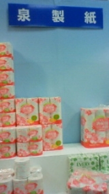 丸富製紙さんで、使ってみたいトイレットペーパーを発見!私→フルーツバスケット(名前も好きだわー)連れ→緑茶の力フルーツバスケットは、名前の通りバスケットに入った美味しそうなフルーツのパッケージですアスト展示会には、ピーチピオーネマスカットバージョンが陳列されていて、パッケージにはそれぞれ大きなピーチピオーネマスカットの写真がもぎたての香りを楽しめるそうで、フルーツ好きにはたまりません!!「今だったら、マンゴーが良いなぁ」と思っていたら、マンゴーもあるとのこと♪(東国原知事在職時は東国原知事のイラストつきだったそうです)緑茶の力は、丸富製紙担当の方が「緑茶の消臭力を生かして臭いをカットするトイレットペーパーです!」と力が入っているご様子丸富製紙さんは静岡の会社なので、お茶の名産地ならではの商品ですね連れは緑茶の消臭効果が気になったらしく、帰りの電車の中で「私だったら、緑茶の力を持って帰るわ」とボソッと呟きました(アストさんのトイレットペーパー屋さんに取り扱いがあってホッ展示会で見たのとパッケージデザインが異なるので違う商品かもしれませんが(汗))「丸富製紙さんイチオシ商品は?」とアストさん(=一緒に回って下さったアストさんの社員さん)が聞いて下さいましたというわけで、丸富製紙さんのイチオシ商品をご紹介!こちら、棚置きも壁掛けもできるキッチンペーパーですアヒルのくちばしからキッチンペーパーが出てくるなんて可愛いひとつ気になるのは、ティッシュのボックス位のサイズなのに3枚重ね75組(225枚)入りというところ若い方はご存じないと思いますが、1996年にティッシュ革命がありましたティッシュサイズ紙質入り枚数は従来のまま、カートンサイズだけを小型化した「ネピアティッシュ コンパクト」のCMです母が大絶賛して、CM見た直後買ってきたのを覚えています当時はそんなにティッシュに興味はなかったのですが、「スリムなのに大容量!主婦心をくすぐるわ♪」みたいなことを母が言っていたんですよそういう意味で、このスカスカ感は主婦ウケしないような私は冷蔵庫の右側面に掛けて使っています(アヒルのイラストはありませんが、同じ商品です)フック穴が2つもあるので、カチッと固定されて取りやすい!100%再生紙油切れが良く、しっかりしていて破れにくいです片手で取れるのは料理中便利だし、ロールタイプより衛生的だし、アヒルバージョンだったら遊び心もあるし♪サイズそのままに増量してくれたら満点な商品です!http//moniplajp/bl_rd/iid173457170751a6ace4d544e/m4f2a3db2e3881/k1/s3/