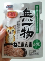 無一物(むいちもつ)とは何も無いこと、何も持っていないことを表す言葉で、はごろもフーズさんの登録商標ですペットの専門店コジマ通信販売オンラインさんの、はごろもフーズ 無一物ねこまんまパウチ かつお50g1つをモニプラさんでお試しさせていただきました2匹共通の大好物は鰹節なので、まぐろかつお鶏むね肉の3種類の中からかつおを選びました①食材から自然に水分を摂取できる②良質なタンパク質を十分与えられる③食品添加物飼料添加物を加えていない猫の健康に配慮した①③、シーチキンでお馴染みのはごろもフーズ製品で、安心安全の国産品です♪副食のため総合栄養食と一緒に!が基本とはいえ、今回は無一物だけでパウチを開けると、2匹ともササッと足元にやはり良い匂いがするんでしょうね(画像左下では黒白がウロウロ、右ではキジ白がジッと待っています)さすが原材料名にかつおのみの記載だけあって、かつおそのものな見た目!「かつお本来の旨みを味わえるよう、かつおと水だけで仕上げたキャットフードです」という説明に期待が高まります♪おぉ、ガッツいてる黒白のグイグイぶりに出遅れたものの、キジ白も体をねじってまでの参戦!2匹とも美味しいようで無我夢中♪↑頭をブンブン動かすから画像ブレブレでスミマセン(無添加低マグネシウム毛玉ケア系に、見向きもしないことが多い2匹正直、また食べてくれなかったらどうしようと不安でしたが杞憂に終わりました)ペロッと完食後、満たされ顔の2匹です♪ごちそうさまでした!http//moniplajp/bl_rd/iid9377885975441d3e37d56a/m4f2a3db2e3881/k1/s0/ 続きを見る
