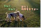 昨日のサスケのお散歩デビューのつづき ビーグル界のアイドル「花ちゃん」 の後ばかり、くっ付いて回るサスケ しかし、その「しつこさ」に花ちゃんから怒られ 今度はヴィヴィと遊びます おウチでやっていることを、外でもやります 広い場所だと楽しい♪ \(◎o◎)/!この顏 ヴィヴィの「鼻しわ顏」が移った サスケ、まだそんなお顔真似しなくていいよ 続きを見る