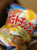 株式会社湖池屋 さんの、富良野ポテトチップスを2種、食べてみました 焦がしバター味と、 ローストポーク味 3袋×3袋いただいたので、1袋ずつ父に