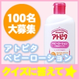 「カサカサかゆかゆもう悩まない」クイズに答えてベビーローションを100名に!赤ちゃんの肌のカサカサかゆかゆケアにアトピタ!アトピタは保湿を重視したスキンケアシリーズローションやクリームなどにはもちろん、ベビーソープやシャンプー、日やけ止めにまで、たっぷりと保湿成分を配合しています毎日の正しい保湿ケアで、カサカサかゆかゆに悩まないお肌へこの季節は大人でも肌がカサカサしてきますよね私も足や背中がかゆくてかゆくて困っていますうちの4歳と1歳の娘も肌がカサカサしてしまってかわいそうなくらいお風呂上りにローションなどで保湿を心がけていますが、それでもかゆいらしく、夜寝ているときに無意識にかきむしっています特に下の1歳の娘は、生後1ヶ月くらいから顔やひじなどに湿疹がたくさんできていて、「アトピーかも」と言われていました湿疹は最近はおさまってきていますが、やはり頬のあたりのカサカサが気になりますアトピタは使ったことがないのですが、今回のプレゼントのローションだけでなく、ベビーシャンプーやリップ、入浴剤などさまざまな商品があります娘の肌に合っていれば、トータルで使ってみたいですね 続きを見る ['close']
