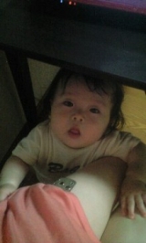 初めての家族での旅行中、旅館でリラックス中に、あれれ?おなかが減ったのかな 保湿クリームをパクリ!