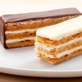 ミルフィーユ菓子「 もりもと ミルフェ 」↓ ↓ ↓ 北海道バターの豊かな香りが広がるサクッとしたパイに、香りの豊かなリキュールをちょっぴ