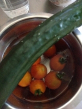 日ごろの食卓夏になり oniyome農園も収穫期毎日のように ごろごろ野菜がとれますプチトマト アイコ トマト(桃太郎)なすピーマンゴーヤ