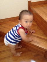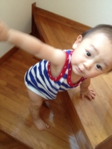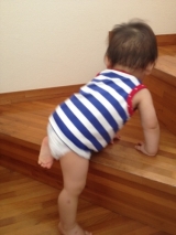 今日は、一日紙おむつの日いつもは布おむつがメインですが、お出かけするので うちではいつも下はパンツいっちょ 笑着替えさせやすいので… 最近のちびお