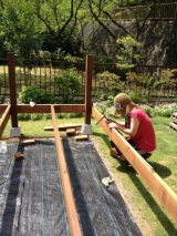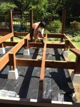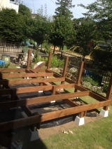 こんばんは 梅雨はもう終わりなのでしょうか…?幸運にもお天気に恵まれ、今日でほぼ最終段階に入りましたoniyome家のウッドデッキ 大体の基礎は出来上が