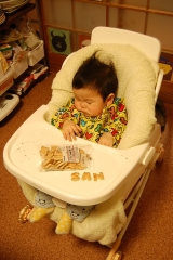 パンプキンスのお食事エプロンを追加で購入しました ちょっと高めだったけど服以上に毎日着るものだからやっぱかわいい方がいいな! 結構大きめで2歳くらいまで使えそう しかし初めてこれを着た日 一生懸命食べてると思いきや、、、??妖怪アンテナビンビンで寝てるではないか、サンキチよ おにぎりをつかむ手のまま寝てる母は食事は諦め ガチャガチャ片付けしても寝てる 母は食後のおやつ「アルファベットビ 続きを見る
