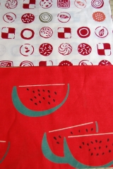 スイカとクッキー柄の手ぬぐいget♪ どちらかで帽子を作ろうと思って購入したんですがスイカは柄が大きいので 帽子にには向かないしタンクトップを作ることに見返しは赤のバイアステープを縁取りじゃない風にしました昨日は寒かったので 試着もかわいそうと思いイメージだけ(笑) 女の子だったらもっと丈を長くしてワンピースもかわいいだろうな〜 手ぬぐい1枚でできるし肩が両方ボタンなので着せやすいし涼 続きを見る