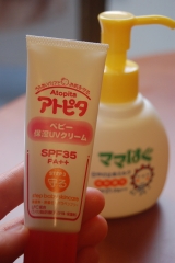 帽子をどうにも嫌がるので 日焼け止めが必須の今日このごろ 以前実家では「アトピタのベビーソープ」を使用して気に入ってて 今回はこちらの日焼け止めも入手したので使ってみることにしました アトピタファンサイトファンサイト参加中 今年体用に購入した「ママはぐ」はポンプ式でしゃばっとしてて伸びがいいけど アトピタのほうはクリーム状なのに同じくらい伸びがいいのが感動♪ 顔の上にパパッとのせて 続きを見る ['close']