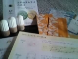 丁寧なあいさつ文と共に届いたサンプル、3色あります