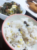うちは基本、白ご飯でなにも混ぜないことが多いんですが最近、娘がうどん屋さんで良く食べる「黒米」やら「古代米」やらがお気に入りで家でも炊こうか