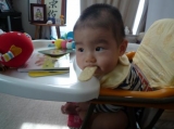 カトージ写真コンテスト 「みんな笑顔になぁれ」に参加中 KATOJIの食事チェアは妊娠中に越谷レイクタウンでフリマを出店した際に、お義母さんが 近くの出店舗で見つけて買ってきてくれたものです お義母さんは「離乳食が始まった時期に泊まりに来た時に使えばいいよね」なんて言って、 自宅ではなくパパの実家に置いておくように買ってきてくれたのです いざ離乳食が始まり、はじめはバウンサーで食べさせていたのですが安定感がなく、食事 を与える私も使い勝手が悪かったので、KATOJIの食事チェアを自宅に持ってきてもらった のです それまでKATOJIというメーカーを知らなかった私今ではベビー用品売り場に行くとよく目 にします 今となれば、食事の時にはなくてはならないものです息子も食事の時はこれに座るという ことを理解しているようで、「ごはんだよー」と言うと、食事チェアのトレイの部分をたたきますw 早くちょうだい!と言わんばかりに(笑) 最近では食事の時以外でも大活躍出産祝いで頂いたバンボはもう簡単に脱出ができてし まうので、掃除機をかけてる間や家事をしている間に座らせておくこともあります それに加え、我が家にはダイニングテーブルがない点でもかなり重宝しています 大人の食事の際は折りたたみ式のテーブルにこのKATOJIをくっつけて座らせておきます そうじゃないとテーブルの上の食事がひどいことになるのでねw はじめのうちはこんなふうにおとなしく座っていました↓ おせんべい横着食い(笑)↓ 食べながら寝ちゃうときだってありました↓ しかし 今となればこんな事態 身をのりだして よいしょーーー!と足まであげちゃいます(笑)お行儀悪いですよw↓ これはKATOJIからベビーベッドに脱出成功のショット↓ 危ないけど本人は達成感に満ち溢れてました(笑) ママが用をやってるときはこうやって大人しくテレビを見てくれてる事もあります↓ (そうでないこともあるけどw) 狭いところが落ち着くのか、体育座り状態いい笑顔頂きました!w↓ 横着食い、第2弾(笑)↓ とにかくボクは大食いなのです♪いっぱい食べてもっともっと大きくなれ♪ 「おいしおいし♪」 第1回 カトージ写真コンテスト 「みんな笑顔になぁれ」 ←参加中 続きを見る ['close']