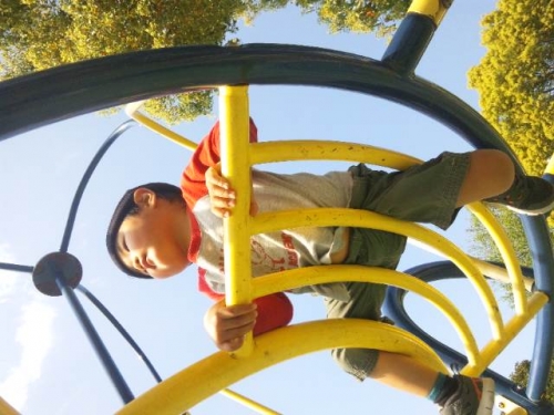 いつもの公園で、今まで乗れなかった遊具に初めて乗ることができました♪記念にパチリ♪あーあかわいい…