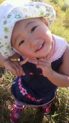「はい、ポーズ」でニッコリ笑顔 太陽のもとで元気に遊んでいるときに撮影しました