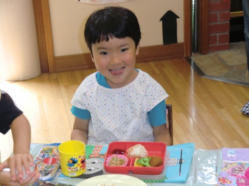 今日は大好きなおにぎりを自分で作っての給食です! 見て!おいしそうでしょ