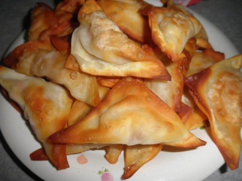ツナコーンチーズのワンタン揚げ焼きをつくってて 三角だーーー!っと思わず ぱしゃり!