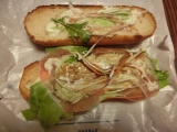 今日もお疲れです 晩ご飯は サンドイッチを食べました サブウェイ ドトール どちらも行ったことがなく 初めてのお店です サブウェイ えびアボカド¥450 パンはウィート(小麦胚芽入り) 野菜多め トッピングなし ホースラディッシュソース を 注文しました 中身は いっぱい野菜が入っています 野菜は新鮮な感じがします メインのえびが 4つ入っていたんですけど ちょっと小さい 野菜に負けてしまって どこにあるのか わからないぐらいだったのが 残念です えびよりも ローストビーフみたいな 自己主張する具材のほうが もっとおいしいかも って思いました サンドイッチは ソフトなパンで食べやすかったし 味もよかったです 野菜多めにしましたが パンからはみ出て ぼろぼろこぼれることもなかったし 野菜を食べている満足感も十分です 野菜サンドイッチ ならば GOODでした ただ 接客には がっかりです 初めてのお店だったので 「どうしたらいいですか?」 と 最初に確認しましたが 店員 「この中のメニューから選んでください」 と 機械的な返答だけです 笑顔もありません 店内にお客がいないにもかかわらず そっけない対応にとまどいながら えびアボカドを選ぶと 店員 「パンを選んでください」 です そして パンを選ぶと 店員 「6種類の野菜で食べれないものはありますか」 わたくし 「ありません」 と 答えると 復唱も 「わかりました」も 「はい」もなし それっきりです 無言で野菜を入れています わたくし 野菜は多いほうがおいしいよ と 友人に聞いていたので 「野菜多めにしてください」 と お願いしましたが 返事なし ふつうだったら 「どの野菜を多めにするのか」 とか 「このぐらいでよいですか」 とか もう少しコミュニケーションがあってもよさそうなものです 次も 店員 「ドレッシングを選んでください」 だけ わたくし 「ホースラディッシュソースってどんな感じですか?」 と 聞きましたが 「ちょっと辛目です」 と よく分からんお答え なんじゃそれ?! と 思いながらも そのままスルーして ホースラディッシュソース を選択しました 店員 「ほかの注文はありませんか」 と いちおう確認があり 会計をしました トッピング とか パンをローストするなどの確認は一切ありません 野菜が多めだったら トッピングはできないんでしょうか? 持ち帰りには パンをローストする選択肢はないんでしょうか? ???がいっぱいです 初めてだからこそ きちんと応対してもらいたかったんです どこかのファーストフードの 「ご一緒にポテトもいかがですか?」 の質問を 余計なお世話じゃ と思うこともあったんですけど それぐらいの やる気がほしい サンドイッチはおいしかったんですけど あの接客では 魅力半減です しばらくは また 行こうって気にはなりませんね http//moniplajp/bl_rd/iid433990466502221c9b7f0a/m4fa0ef61b906f/k0/s0/ ドトール ミラノサンド チキンと生ハムのアボカドソース ゆず胡椒風味 ¥390 こちらは期間限定商品のようです 具は そこそこの量です チキンに クリーミーなマヨネーズタイプのソースがよくからんでいて ゆずこしょうの 隠し味アクセントもしっかり効いていたので 見た目よりも 食べごたえのある商品でした 生ハムの量が少なくて チキンに負けてしまうだけかもしれませんが 生ハムの存在感がなかったのが 残念に思います もともと 生ハム自体が薄くスライスされているので 1枚をそのまま広げるよりも 折りたたんだり ロールしたりして 少しでも厚みを出して はさむほうが 食べたときに インパクトがあるし 味わいがあるのでは と 思いました (量が増やせるともっといいんですけどねえ) わたくしは サンドイッチには ソフトタイプのパンのほうが 好みなんですが このパンは ちょっとハード系だったんですけど 味もおいしかったし 噛み切れないような 食べずらい感じもなかったので GOODでした 2つとも ペロッと頂いてしまいました ごちそうさまです♪ 続きを見る ['close']