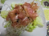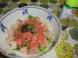 11月23日(土)晴れ 今回のモニターはコチラ ピエトロファンサイトファンサイト参加中 届いたその日に、まずは味チェックを 『ピエトロドレッシング グリーン』のほうで サーモンとビンチョウマグロが破格値だったのでトッピング 「具が大き過ぎる」というクレームは毎度のこと 美味しいからオッケーなのだ 少しは凝ったサラダを作ってみましょうかねと思い 今度は『生搾りたまねぎフレンチ』を使ってみます この、たまねぎ色を引き立たせるのは白でしょ ってことで白いものサラダにしよう 名付けて『鳥の巣サラダ』 まずは春雨を揚げたのを敷いて、その上に茹でたえのき茸、大根の千切りをのせ ウズラ卵をおいて、釜揚げシラスをトッピング そして、玉ねぎフレンチをかけて じゃ〜〜〜ん!!! 娘が一言「地味だね」 確かに いいのっ!ホワイトサラダオブバードネストなのっ! といいつつ、少し色味も欲しいねってことで、レタスの上に、余った春雨乗っけて生ハムをのせ グリーンドレッシングをかけます 11月22日いい夫婦の日のディナーは、サラダとカレーとボジョレヌーボーの夜でありました 続きを見る ['close']