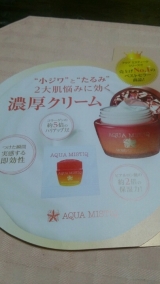 サンプルをいただいてから、かなりの時間がたってしまった 小じわとたるみにきく、だと? と思ってサンプルをいただき、使ってみました 珍しいくらい真っ白のクリームです 使い方は、リーフレットに書いてありましたが ①顔全体になじませる ②気になる部分(小じわとか…)を伸ばすように追加してのばす ③顔全体を手のひらで包み込んで、軽く引き上げる このクリーム、けっこうヒアルロン酸の2倍の保湿力&コラーゲンの5倍の弾力性改善率を持つ物質が含まれているんですって 今回のサンプルでは4回分をいただきましたが、↑の使い方だからか、一回分が結構多め こってりしたクリームが苦手な人はどうだろう??という気もしますが 冬場や乾燥したオフィスなど、ちょっとがっちり保湿しなきゃ!!というタイプにはいいかもしれません アクアミスティーク ファンサイトファンサイト参加中 続きを見る ['close']