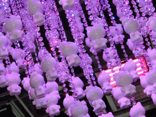無数のキティちゃんがぶら下がったシャンデリア、表参道で見つけましたとっても可愛いホワイトカラーのキティちゃんに、いつまでも上を向いて見入ってしまいました♪