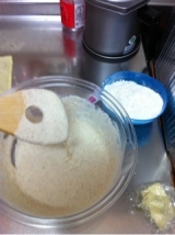 パンドカンパーニュを焼きました しあわせを分けあうパンという意味みたいです 材料強力粉 190g全粒粉 40gライ麦 10g大麦粉 10gインスタントドライイースト 2g塩 45g水175gハチミツ 6gバター 20g大麦粉は、今回は生地に対して5%です まず、粉は全て合わせてから、半分にわけておきます 全体にある白色の強力粉のうえにのっている左の粉が大麦粉すこし香りが他の粉よりありました灰色はライ麦で、茶色っぽいのが全粒粉です ボウルに粉半分、はちみつ、イースト、水をいれて木べらでまぜる よくまざったらこんなかんじ結構さらさら さらにバター、のこりの粉、塩をいれてよくまぜます こんなかんじに粉っぽさが残るくらいで、台にだして、手でがんばって捏ねます 10分くらいかなたたきいれたりして なめらかになってきたら、丸めてボウルにいれて、室温で30分、予備発酵 ちなみに、グルテンはできにくい配合のため、薄い膜は普通の生地よりできにくかったです 30分後、すこし大きく成長します パンチして空気を抜きますこうすることでさらにパン生地に酸素を与えて、イーストの活動を活発にさせまーすそして、三つ折りにして、90度に回転させてまた三つ折りにして、丸めます つぎは一時間かけて一次発酵じーっくり時間をかけて発酵させると、小麦粉からのうまみがたくさん出てくるのです 一時間後 でかっ そしてまた三つ折りにして丸めて、全粒粉をふるったコルプ型にいれまーす 室温でさらに一時間 こんなにおっきくなりました オーブンシートに裏返してのせて、クープで切り込みをいれ 霧吹きしていざオーブンへ300度に予熱したオーブンに220度30分ちなみに我が家は電気オーブンですやっと、かわいいかわいいパンが焼けました 大麦粉だけではグルテンをつくることができないので、100%大麦粉はできないけれど、つぎは割合を増やしてみようかな カンパーニュは、スモークしたものと相性がいいのですスモークサーモンはもってこいだね サンドイッチにして、旦那さんにも食べさせたいと思いまーす つづく ADEKAのβグルカンファンサイト参加中 続きを見る ['close']