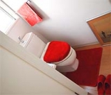 トイレのスリッパを新調しようと思いつき、ついでにフタカバー&マットも追加購入お値段考えると、どっちがついでなんだか?な状況だけど 1Fのトイレファブリックはモノトーン、2Fは赤と決めているけれど、意外にも、そうそう売っている色ではなく、探している時には、なかなか見つからない色2Fなんて、洗い替えがないので、お洗濯したら、乾くまでは裸んぼそんな中、洗えるスリッパを探していて、スリッパとお揃いのトイ