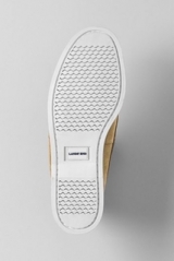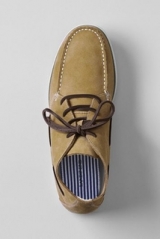人気の高いデッキシューズをハイカットにした、気軽な履き心地のデッキブーツ日本人の足型に合わせて作られた、日本オリジナルの一足ですアッパーには、柔らかく履き心地のよいスエード素材を、一枚仕立てで使用アウトソールは爽やかなホワイトのラバー、波形の刻みを入れ、濡れた路面でも滑りにくいようになっていますインソールは取り外し可能快適なクッション材入りで、つま先側には、吸湿消臭効果のある竹炭入りの機能素材を使用しています