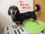 今回いただいたのはワンコ用のバスエッセンス ライオン商事『Quick & Rich ボディさっぱり バスエッセンス』 シャンプーと同じフォレストグリーンをいただきました このバスエッセンスは↓ お湯に溶かすと、炭酸のマイクロバブルがシュワっとはじけて 肌や被毛にいきわたり、ゴシゴシこすらなくても皮脂やアカ、 ホコリなどの軽い汚れをとりやすくします ニオイのもとになる汚れを浮かせやすくする、 植物生まれの“パパイン酵素”配合 うるおいリッチで贅沢な美容成分配合 うるおい成分シクルプロテインローヤルゼリーコラーゲン ビタミン配合 すこやかな肌と美しい被毛を保ちます と、こんな効果があるそうです では、早速チョコさんを洗ってみましょう 本来はワンコ用バスタブやタライで洗うようなのですが 我が家には無いのでいつものカゴで カゴにお湯をはり バスエッセンス投入 大体10ℓに1袋が目安だそうです 入れたら サラサラでお湯にすぐ溶けました! 出てきた( ̄□ ̄;)!! お風呂嫌いだからお湯に浸かれないチョコさん チョコみたいにお風呂苦手な子を お湯に浸からせるのは大変かも 仕方ないので無理矢理入れてゴシゴシ、ナデナデ 体洗ってる時は意外と大人しくしてたから助かりました でも、洗ってた旦那さんいわく 「泡が無いからほんとに洗えてるのか不安」 だ、そうです そうだねーって言いながらチョコをカゴから出してみると 最初よりお湯が濁ってる∑(゚Д゚)!! て、ことはお湯に浸かって少しなでながら洗っただけで 汚れが落ちたってことかな お風呂終了後のチョコさん 暑いから最後にちょっと冷たい水をかけてあげたよん ドライヤー後のチョコさん バスエッセンスしかしてないけど普通にサラふわに シャンプーとシャンプーの間に手軽に使えるから シャンプーするのめんどくさい!っていう 私みたいな人にオススメでーす あと、お湯に浸かってると体ブルブルして水飛ばさないから 服も濡れずに簡単にお手入れ出来ましたよ 乾かした後にもう少し香りがするともっといいのになぁ 気になる方はこちらからどうぞ↓ ライオン商事『Quick & Rich ボディさっぱり バスエッセンス』 ライオン商事株式会社ファンサイト参加中 ←ポチッとクリックお願いします 続きを見る ['close']