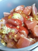 マキ屋フーズさんの 琉球チリソース紅コク 綺麗な赤 にんにく、粗挽きコショウ、生姜汁、濃口醤油で味付け 原材料は 紅麹 黄麹 泡盛 豆乳 島とうがらし アルコール度10度 私は鶏胸肉の下ごしらえに使ってみました まず 鶏ハム 2日間寝かせたものをゆでます しっとりとコクのある鶏ハム 次は子供達の喜ぶ唐揚げ 2品ともアルコールのおかげで時間が経ってもしっとり コクのあるマイルド感じにしあがりました 漬け込みはもちろんのこと盛りつけのアクセントにもオシャレに使われていました 沖縄の新商品ぜひ試してみてね マキ屋フーズファンサイト参加中 続きを見る ['close']
